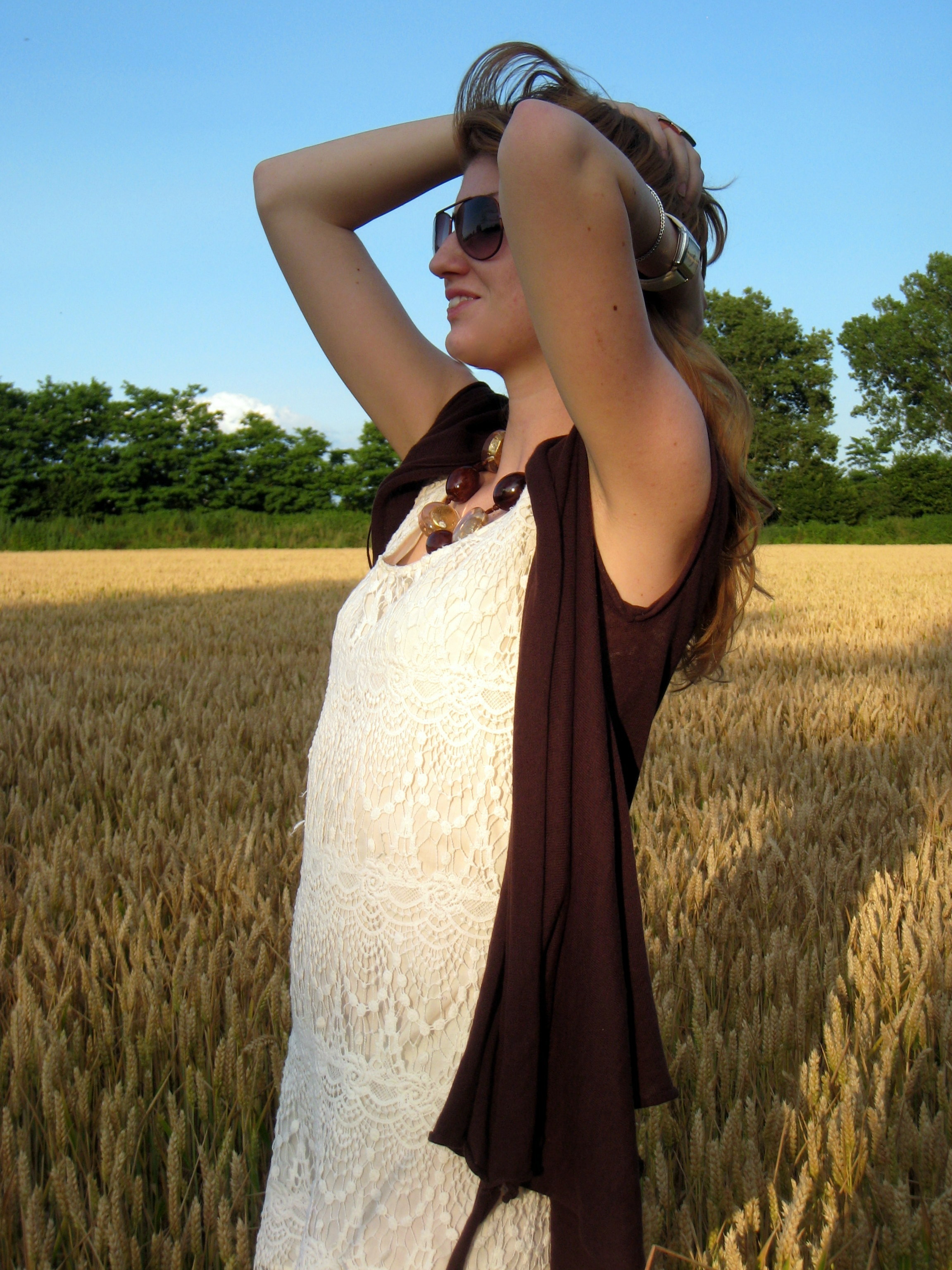 E proprio un campo di grano ha fatto da set per questo vestito in macramè.