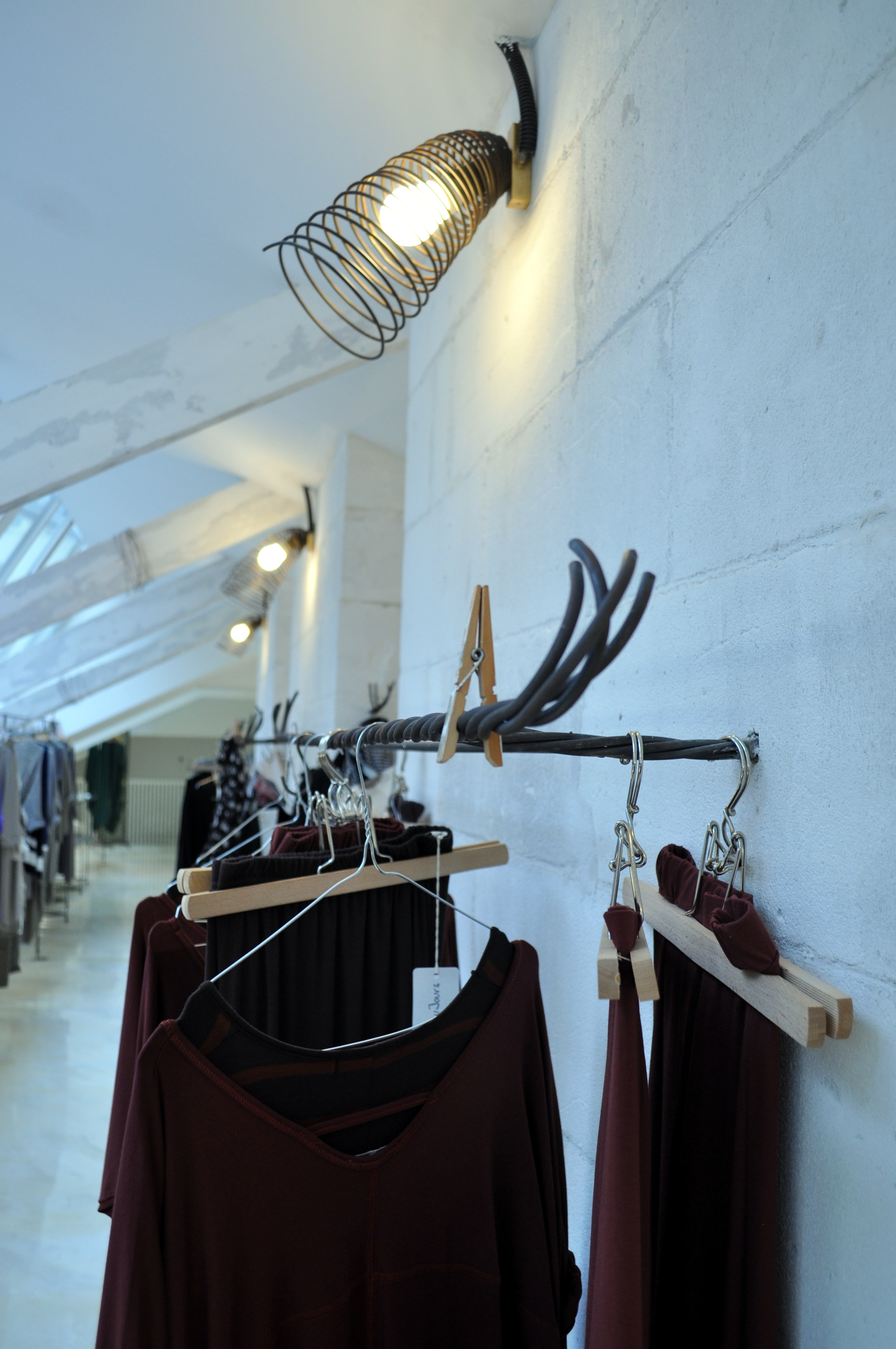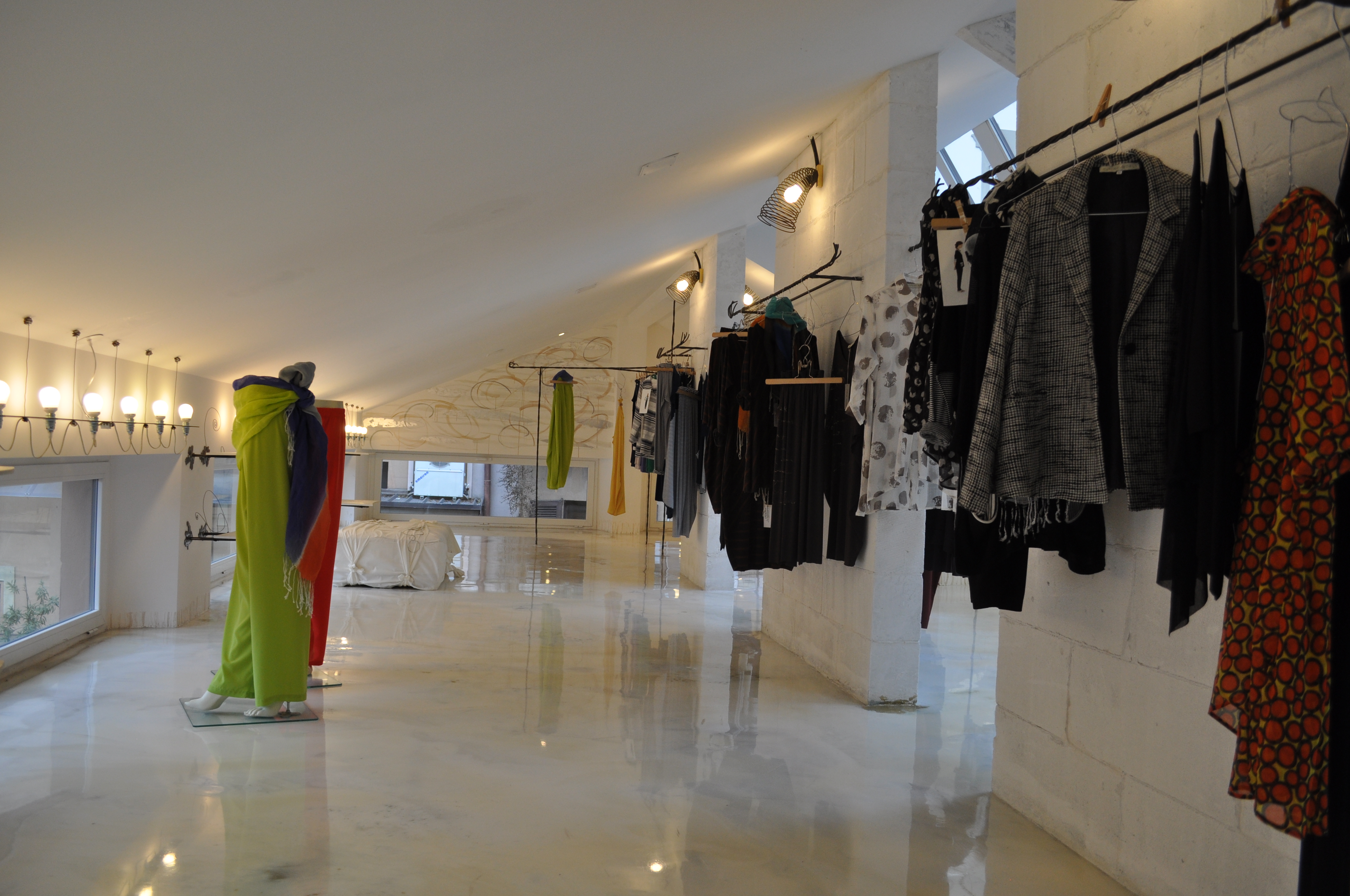 L’attenzione ai particolari dedicata al suo ambiente lavorativo, la sua “fucina” delle idee, si può riconoscere nei suoi capi.