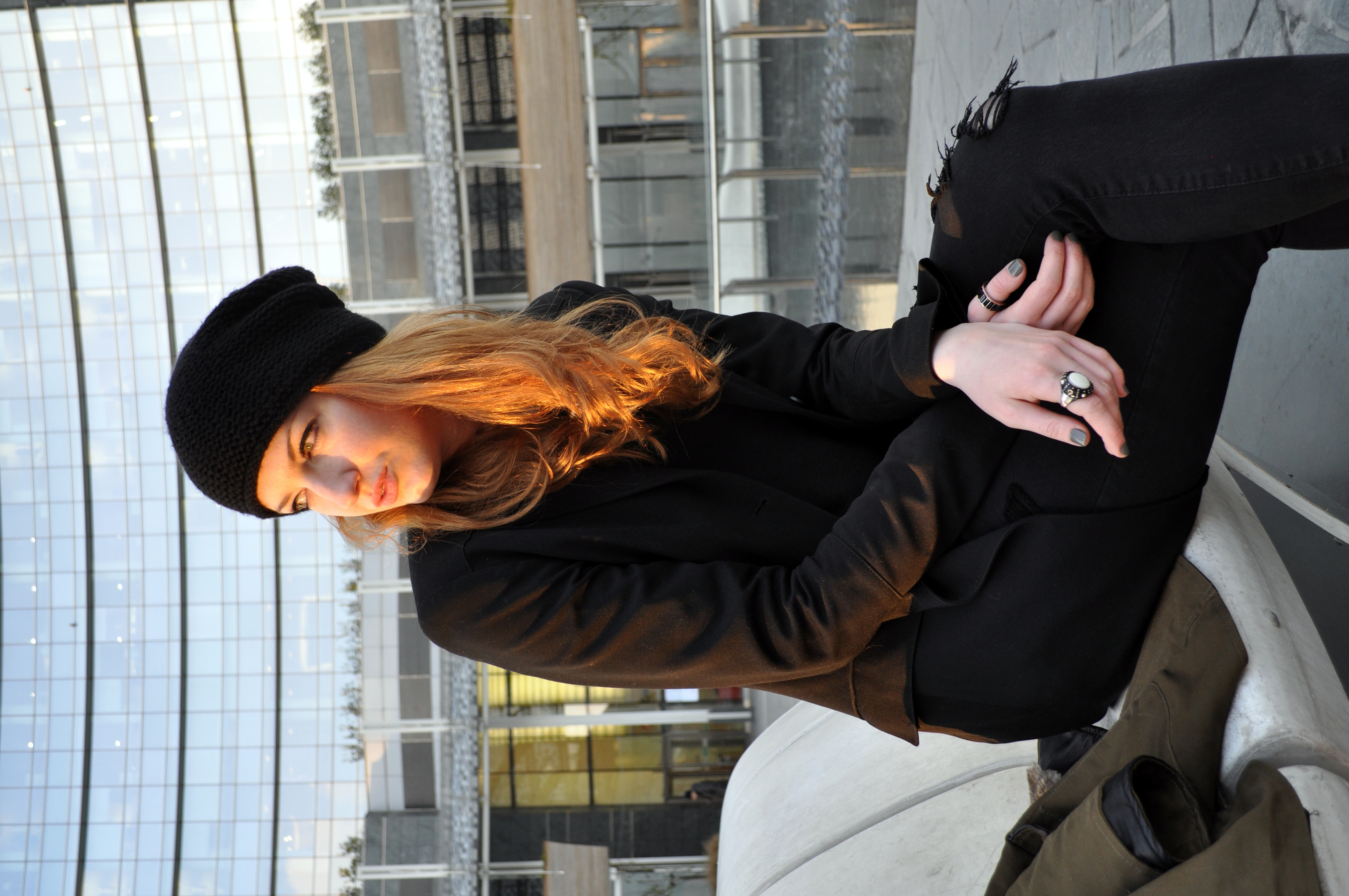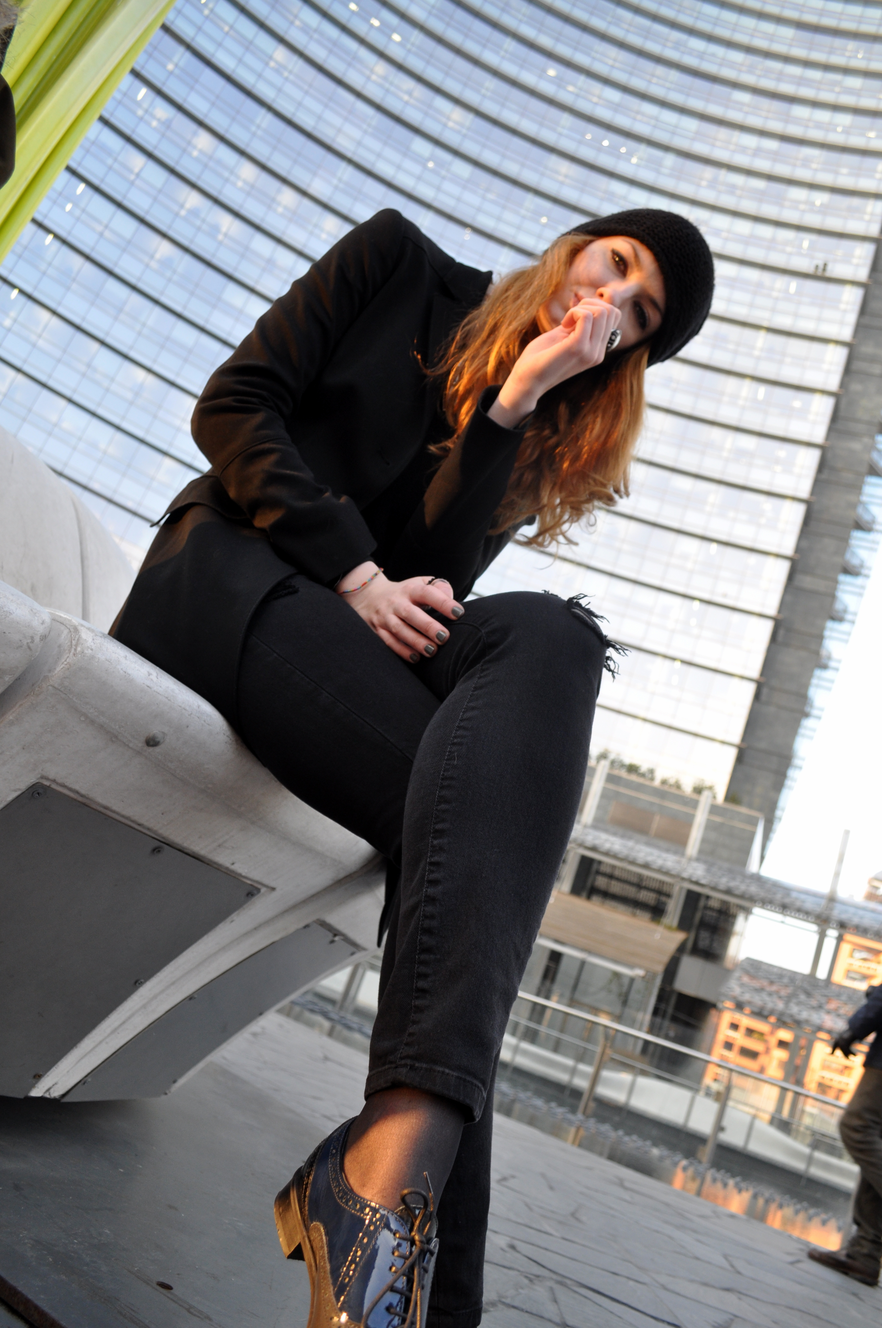 Giacca nera di Motivi, maglia basic di Zara e particolari tutti nella parte inferiore.