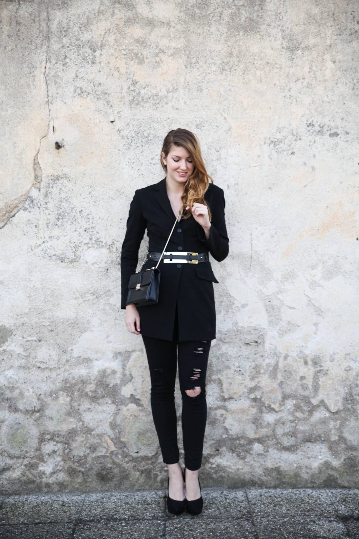Un look che punto sul nero e sull’oro. Con linee semplici ed eleganti. Adoro le giacche utilizzate come top. Un modo nuovo per reinventare un capo basico in un modo sensuale ma chic.