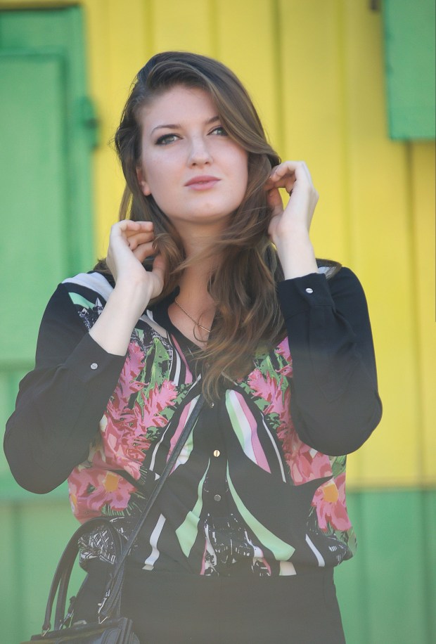 Nel mio caso ho deciso di abbinare un camicia a manica lunga (capo che penso sia il compagno ideale da indossare con gli hot pants) per rendere più elegante il look. Il motivo quasi psichedelico evita il total black.